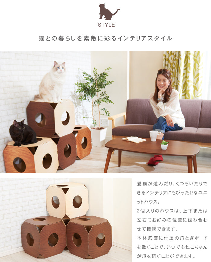 自由自在に組み合わせ可能な猫用ユニットハウス。