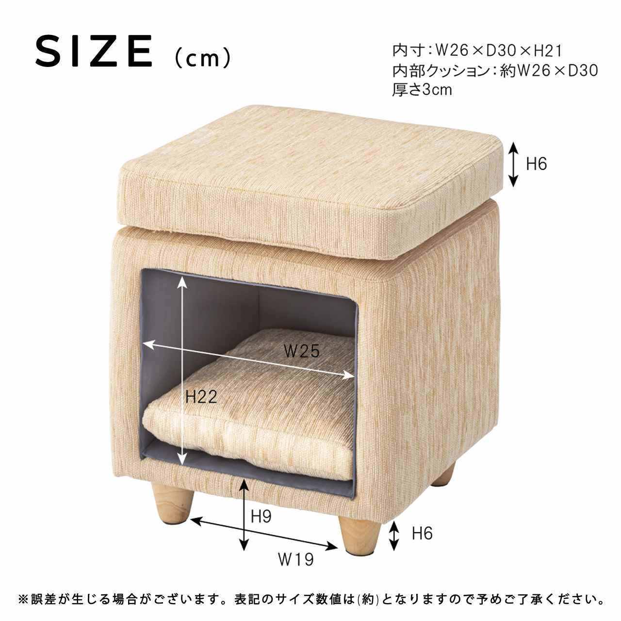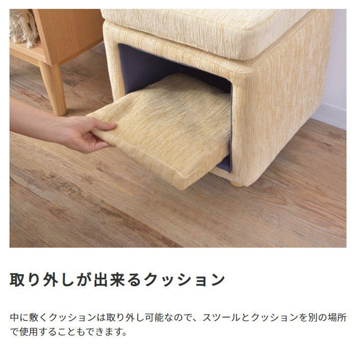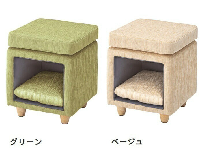 ペットハウススツール ファブリック素材 スクエア型 ナチュラル 天然木 床傷防止 座面35cm×35cm 高さ41cm キャットハウス 猫 ねこ ネコ 家具 インテリア