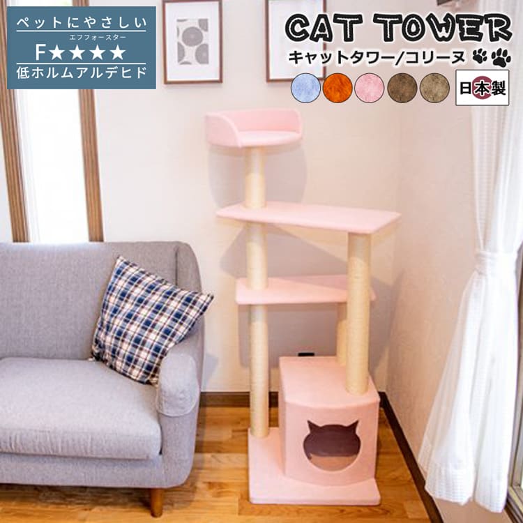 【日本製受注生産品:納期約1カ月】キャットタワー猫用玩具猫ペット用玩具ペット キャットタワー 国産 【Colline】コリーヌ サックス オレンジ ピンク ブラウンベージュ ベージュ