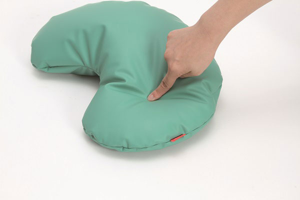 身体になじむ曲線のそらまめ型クッション。体位変換・姿勢保持の時に無理なく身体を支え、やさしく包み込むように身体を保持してくれます。